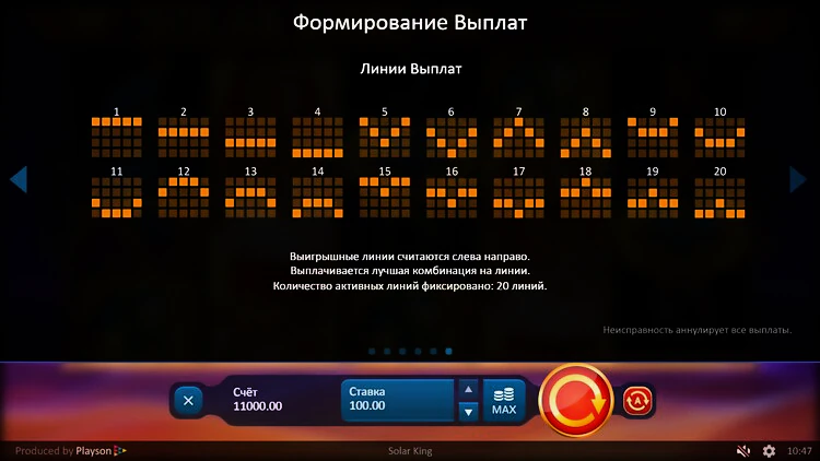Самая низкая ставка в Solar King — 0,20, но игроки с высоким процентом отдачи могут увеличить ее до 100.