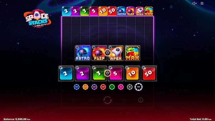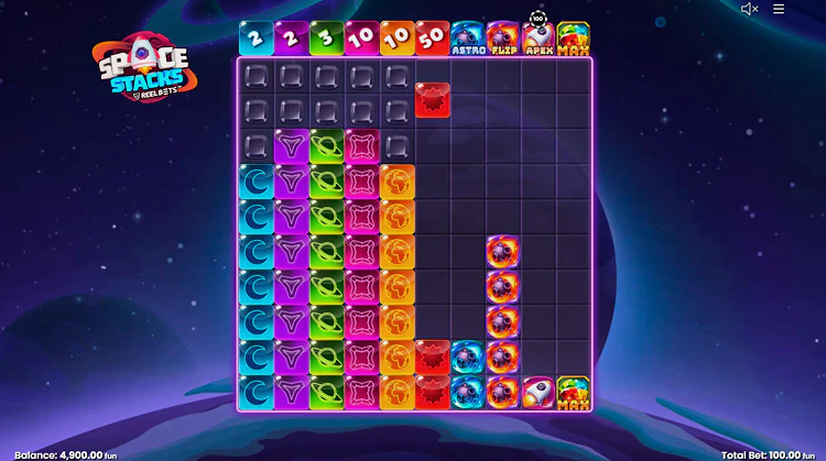 Space Stacks представляет новый взгляд на игровой процесс слотов, предлагая игрокам шанс выиграть до 5000х, заполнив 10 столбцов выигрышными символами. Благодаря призовому колесу, бонусу «выбери приз» и множеству других бонусных функций, эта игра с низкой волатильностью обеспечивает незабываемые впечатления и щедрые заносы.