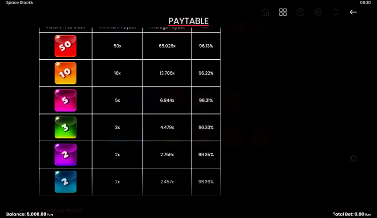 Space Stacks от Push Gaming выдержан в яркой межгалактической тематике. Хотя базовая игра довольно простая, дизайн улучшается именно во время бонусных раундов. Push Gaming всегда отлично справляется с созданием плавной, высококачественной анимации для развлечения. Бонусные раунды напоминают аркадную игру. Это действительно улучшает игровой процесс. Игровой автомат Space Stacks отличается низкой дисперсией. Процент выплат в нем (RTP) составляет 96,39%.
