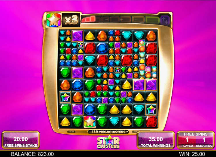 Отличительная черта игрового автомата Star Clusters – наличие опции Megaclusters. Это режим, при котором во время игровой сессии общее количество активных катушек меняется от 4 до 8 (максимальное кол-во). Основная тематика слота – алмазы, основными символами являются драгоценные камни. Адаптация слота Star Clusters к платформе HTML5 позволяет запускать игру как на десктопе, так и на мобильных устройствах.