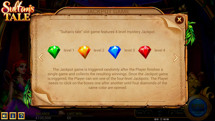 Игровой автомат Sultan’s tale от разработчика PopOk Gaming в сегменте русскоязычного гемблинга мало распространен и не обладает высокой популярностью среди игроков. Однако этот слот может прийтись по вкусу любителям восточных мотивов, которые любят разнообразные бонусные опции — в этой игре их предостаточно.