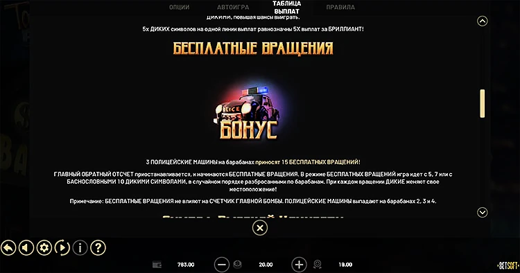 Как я уже упоминал выше, иконки грабителей превращаются в дикие бомбы, когда появляются на экране. Они остаются на месте, а затем взрываются по окончании 10 раундов, принося огромные потенциальные вознаграждения. Как только это произойдет, вайлды очистятся, и начнется еще один набор из 10 спинов.