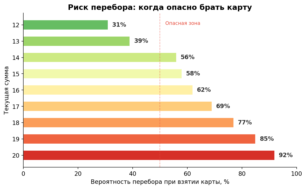 - вероятность перебора при хите на 16 — 62%;
