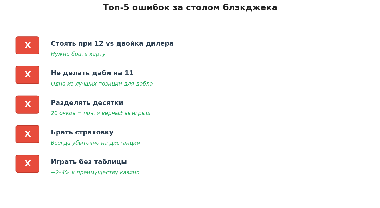 Преимущество дилера растёт, когда за столом допускают типичные промахи:
