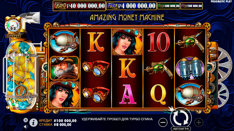 The Amazing Money Machine – классический стим-панковый слот, созданный провайдером Pragmatic Play. Здесь есть динамично распространяющиеся барабаны, MONEY-символы, бонусные уровни и удивительно остросюжетный риск-раунд с джек-потами!