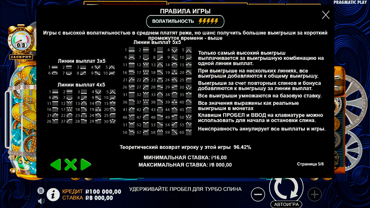 Обратите внимание: сама игровая сетка также меняет размеры, в зависимости от вашего прогресса. В стандартном режиме 3х5 вам откроются 30 линий. Если поле увеличится до формата 5х5, вы получите дополнительные тридцать рядов.