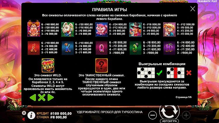 Красная Королева в новом издании слота стала совсем другим человеком. Она потеряла прежнюю суровость, отказалась от деспотичного правления. Этот персонаж стал более лояльным к игрокам и уже готов предоставить пользователям максимальные суммы выплат. У нее есть даже специальный барабан, способный существенно увеличить шансы клиента на получения великолепных множителей. Запускайте игру, спускайтесь в кроличью нору и получайте крупные выигрыши. Максимальный приз в х5000 от суммы ставки сможет забрать каждый игрок без исключения! Присоединяйтесь к невероятным приключениям прямо сейчас!