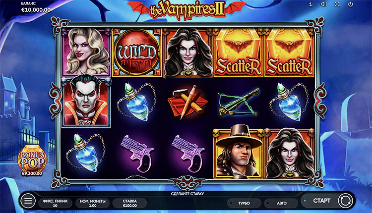 The Vampires 2 — это захватывающий игровой автомат от Endorphina, который является продолжением одноименного культового слота. В этой средневолатильной игре гемблеры вновь погружаются в мрачный и загадочный мир вампиров, полный ужаса и интриг. Слот выпущен в 2022 году. К его особенностям относят среднюю дисперсию, наличие опции bonus byu, а также Maxwin в 1000х.