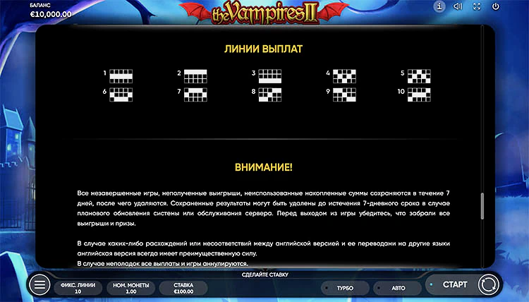 Характеристики игрового автомата The Vampires 2