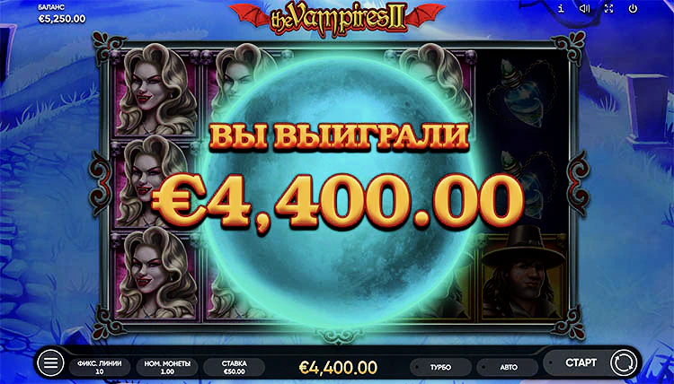 Бонусные символы, такие как скаттеры и вайлды, помогают игрокам увеличивать свои выигрыши и влиться в атмосферу ужаса и приключений. Благодаря стильному дизайну, увлекательным функциям и потрясающей графике, The Vampires 2 обещает высокий потенциал выигрыша до 1000х к сумме вашей ставки.