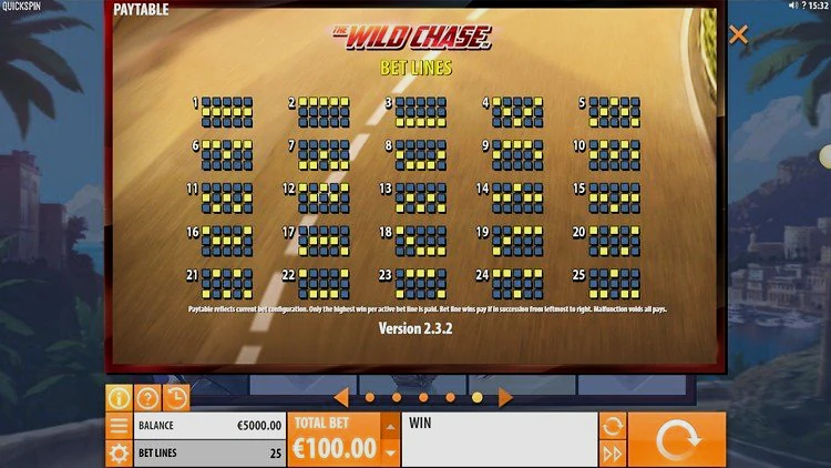 Несмотря на насыщенную графику, множество символов, играть в игровой автомат The Wild Chase в деморежиме или на рубли несложно. По традиции предстоит установить величину ставки – от 0,25 до 100 кредитов. У гемблеров есть возможность регулировать звук и предварительно почитать правила и размеры выплат.