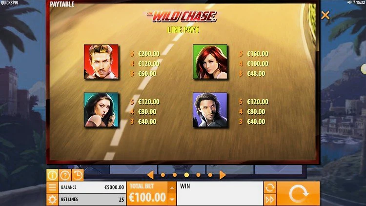 Уникальным преимуществом Wild Chase является его сеттинг. Не так много онлайн-слотов, которые позволяют вам примерить на себя роль опытного шпиона и уйти с аккуратной пачкой наличных. Кроме того, здесь в изобилии представлены бонусные функции, которые должны надолго увлечь вас игрой.