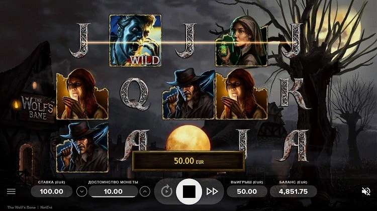 The Wolf’s Bane — это онлайн-слот с 10 линиями выплат от NetEnt, дающий игрокам шанс выиграть внушительный 500-кратный приз. В игровом автомате представлен щедрый раунд бесплатных вращений с четырьмя символами wild, а также раунд выбора приза, в котором разыгрываются призы до 50-кратного размера.