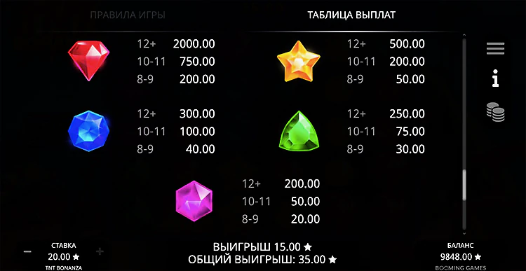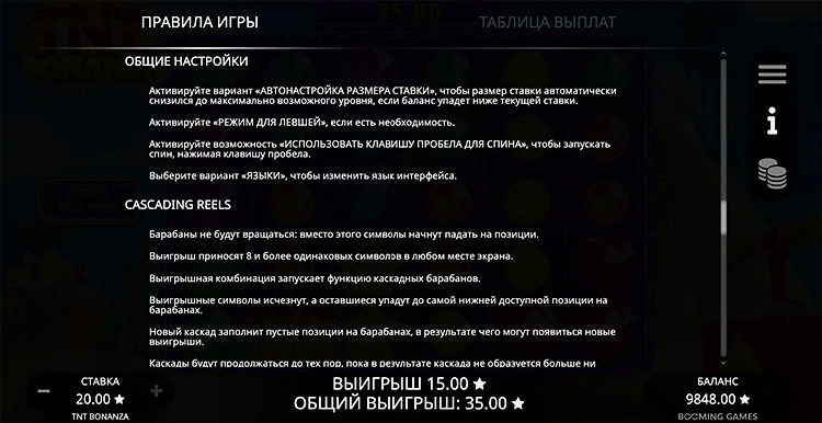 Благодаря особой механике формирования выигрышных комбинаций, играть в Tnt Bonanza максимально просто. Вам не нужно думать о количестве линий и следить за тем, чтобы в определенном месте выпадали нужные символы.