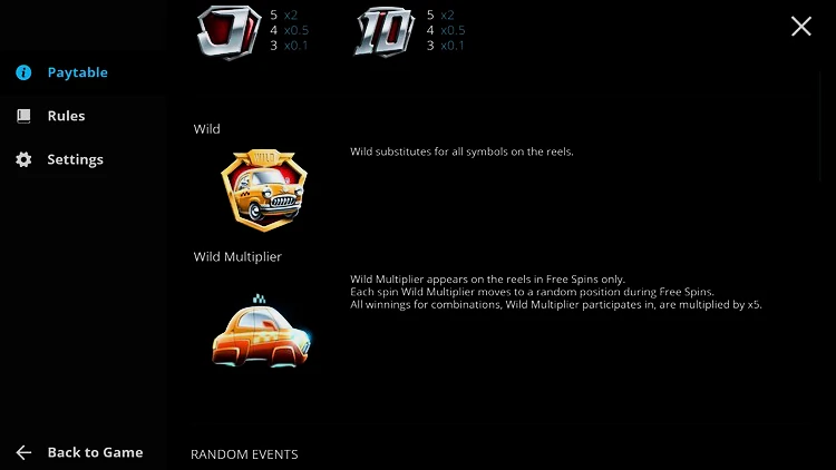 Дикий символ представлен желтым такси, которое заменяет другие стандартные символы, давая вам больше шансов на выпадение выигрышных комбинаций. Во время бесплатных вращений вы также можете получить множитель мира, который представлен боковым видом такси.