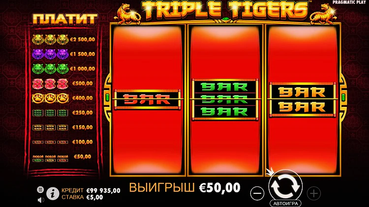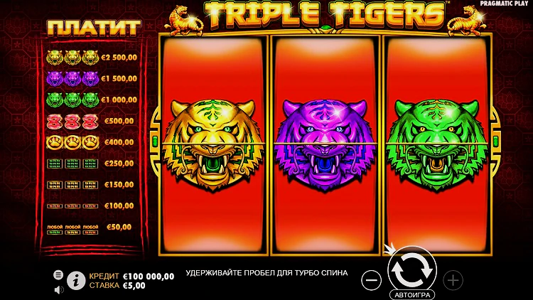 Pragmatic Play – одна из ведущих студий по разработке азартных игр в индустрии онлайн-казино, известный созданием высококачественных слотов, которые привлекают игроков со всего мира. Одним из самых заметных их творений является Triple Tigers, который демонстрирует приверженность компании увлекательному игровому процессу и необычным темам. Такие авторитетные провайдеры, в чье число конечно же входит и Pragmatic Play, всегда гарантируют, что все их игры, включая Triple Tigers, являются честными и надежными, что укрепляет их репутацию в отрасли.
