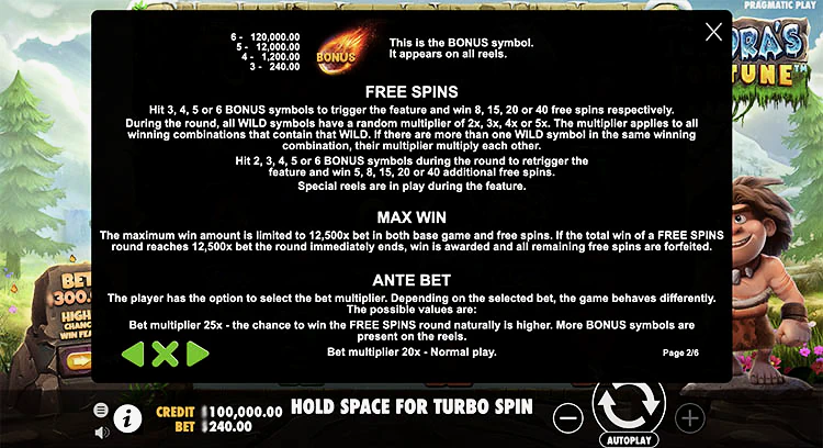 Дикий символ игры в виде женщины из племени заменяет все обычные символы для выплат и может выпадать на барабанах со 2 по 6. Хотя с ним не связана прямая выплата, дикий символ играет решающую роль в повышении ваших шансов на формирование выигрышных комбинаций, особенно во время бесплатных вращений, где он приносит ценные множители.