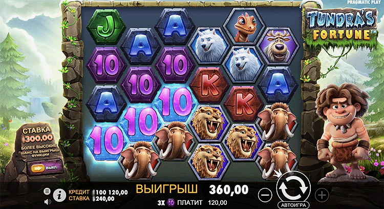 Чтобы собрать выигрышную комбинацию в игре Tundra’s Fortune, вам необходимо собрать одинаковые символы на соседних позициях вдоль одной стороны шестиугольной сетки. Эти соседние символы могут быть соединены горизонтально или по диагонали. Вам нужно собрать как минимум два высокооплачиваемых символа или три низкооплачиваемых символа. Чем больше выигрышных символов вы соберете, тем выше общий выигрыш.