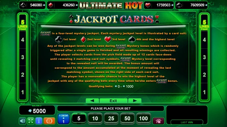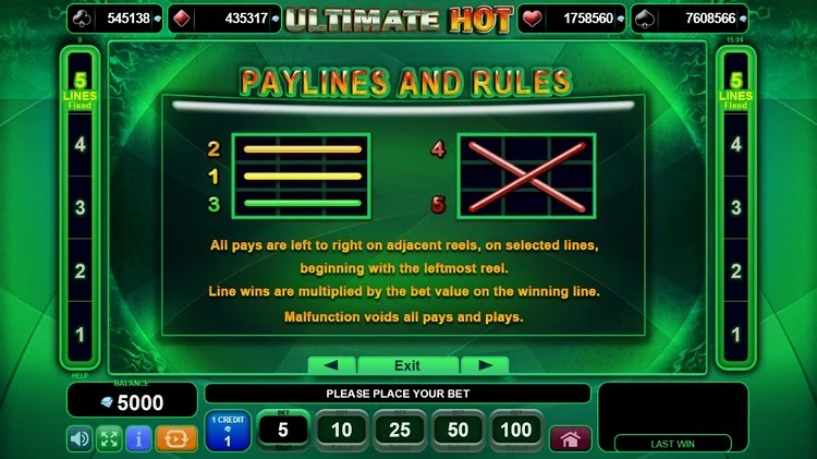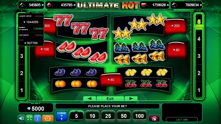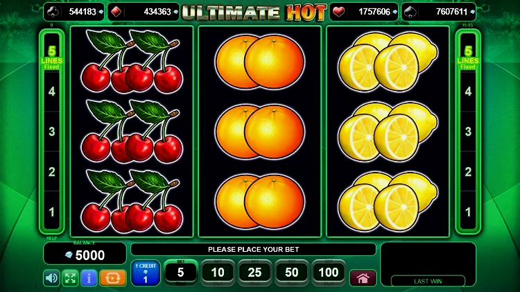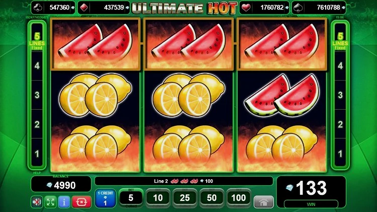 Для тех, кому не хватало креатива во фруктовой тематике, компанией EGT был создан аппарат Ultimate Hot. Простота и лаконичность софта 2014 года порадует любителей ретро-стиля. Всего на 3 барабанах клиенты казино могут сорвать реальный куш.