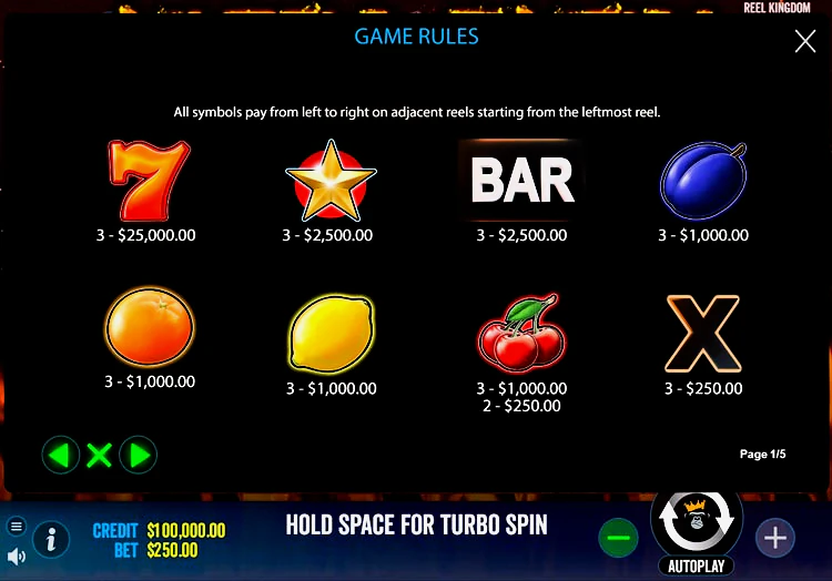 Ultra Burn менее сложна, чем многие онлайн слоты. Все иконки, кроме 7, требуют трех совпадений на последовательных барабанах, чтобы обеспечить выигрыш.