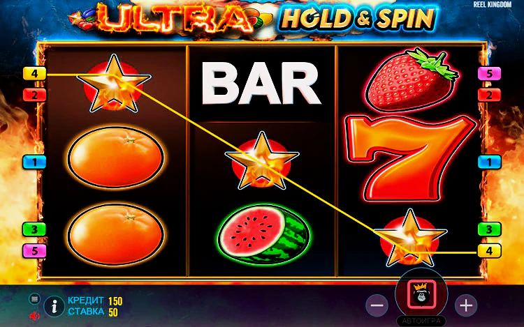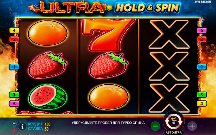Ultra Hold and Spin — это классический слот от Pragmatic Play, который имеет 3 барабана, 3 ряда и 5 фиксированных линий выплат. RTP Ultra Hold and Spin составляет 96,7%, а волатильность средняя и высокая. Среди особенностей Ultra Hold and Spin — дикие символы, денежные символы и повторные спины.
