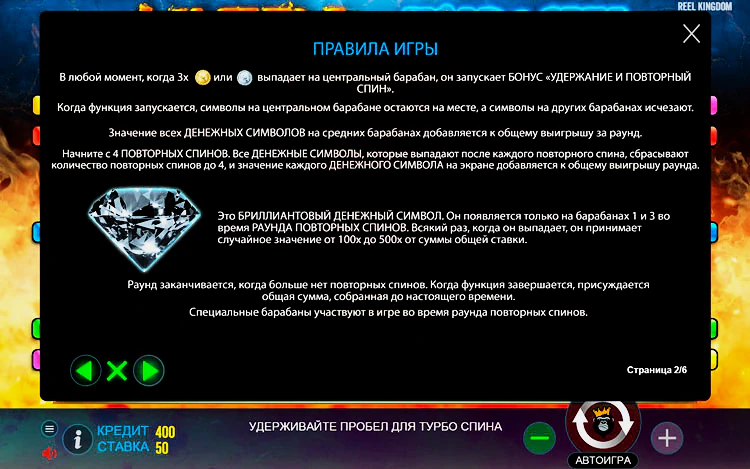 Ultra Hold and Spin — это функция повторных вращений, и хотя это не бонус с фри-спинами, он предлагает довольно увлекательный игровой процесс. Если вам удастся увидеть три символа денег, вы запустите функцию повторных вращений, и вам будет предоставлено 4 повторных спина. Символы, запустившие функцию повторных вращений, фиксируются, и если вы увидите на экране дополнительные символы денег, количество оставшихся повторных вращений «обнуляется» до 4.