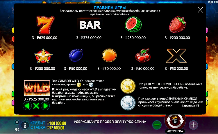 Семерка — самый высокооплачиваемый символ игры, и если вы соберете комбо из трех символов, то получите выплату в размере 62,5X от вашей ставки. Это не самая большая выплата в мире, но для 3-барабанного слота очень даже неплохо. В Ultra Hold and Spin также есть дикие символы, которые появляются на всех трех барабанах, и мы расскажем о них в разделе бонусов и функций ниже.
