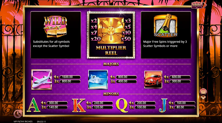 95,23% RTP делает VIP Filthy Riches честной игрой, обещая достойную отдачу и часы увлекательных вращений для любителей азартных игр.