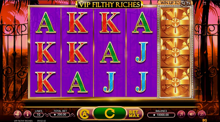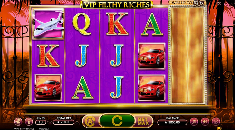Погоня за богатством с максимальным выигрышем в 2000 раз больше вашей ставки в VIP Filthy Riches, где простая ставка в 1 евро может превратиться в щедрые 2000 евро!