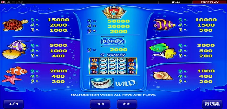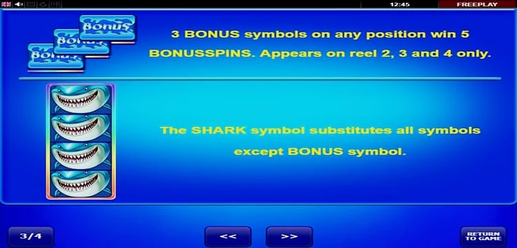 Кроме того, появление этого морского обитателя на 2-4 барабанах в любой позиции запускает раунд пяти бесплатных вращений. Если акула появится только на среднем барабане, игроки смогут насладиться еще более длительным бонусным раундом. Это отличная возможность заработать больше монет во время бесплатных вращений.