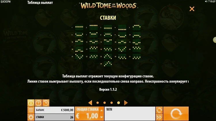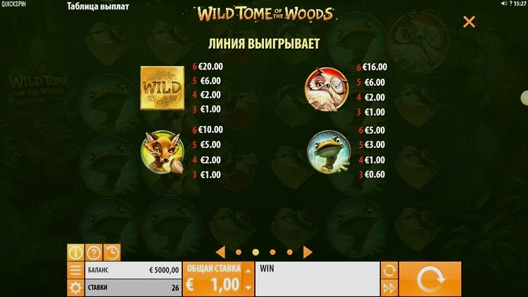 Игра Wild Tome of the Woods очень проста и радует впечатляющей графикой. Quickspin решила не включать слишком много бонусных функций, но те, что есть, работают хорошо. Игрокам, которым посчастливится заполнить сетку дикими символами, получать хорошую прибыль.