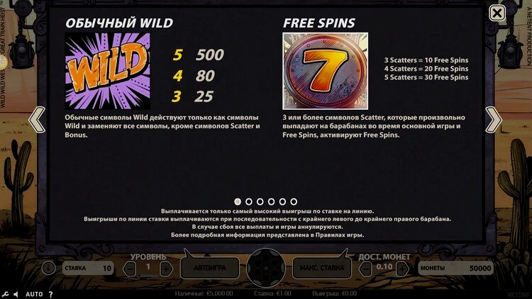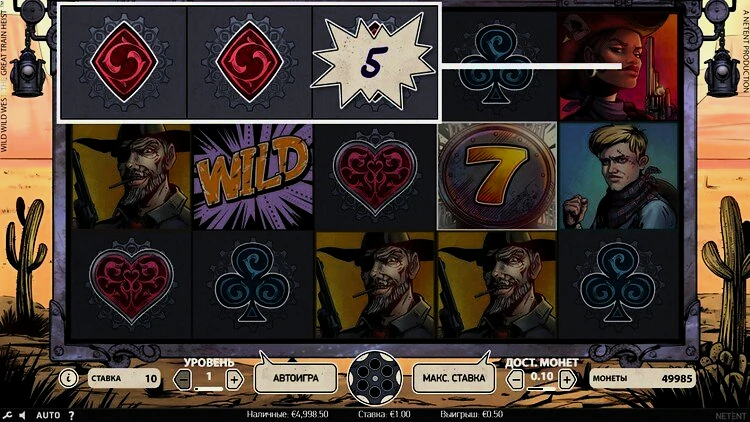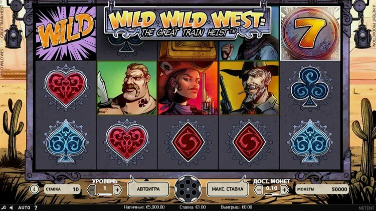 Максимальный общий выигрыш в 500 раз превышает ставку, а также вас ждет бонусная игра и бесплатные вращения. В этом обзоре игрового автомата Wild Wild West будут рассмотрены все механики и опции, задействованные в игре.