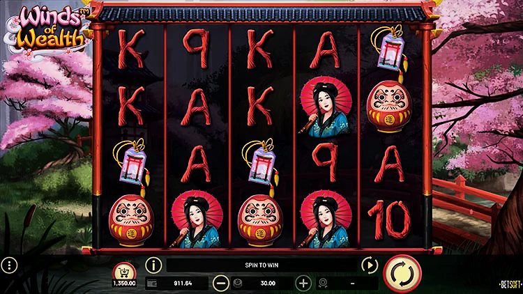 Онлайн-слот Winds of Wealth — это слот-игра на азиатскую тематику от Betsoft. Попадите в прекрасный сад и получайте высокооплачиваемые комбо, заполнив пять барабанов девушками-гейшами и дикими монетами. В игре также есть символ разброса — счастливый кот. Играйте в слот Winds of Wealth на iOS, Android или настольных компьютерах.