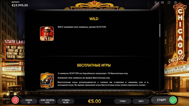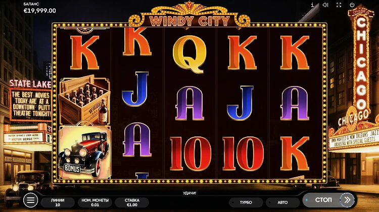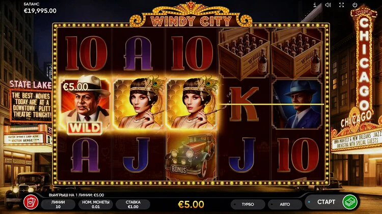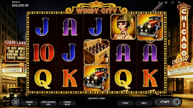 Игровой автомат Windy City позволяет взглянуть на образ жизни в период сухого закона в Чикаго через историю любовного треугольника с участием босса семьи, его невесты и приближенного к нему мафиозо. Игра отличается хорошо продуманным интерфейсом с базовыми функциями и простым, понятным геймплеем.