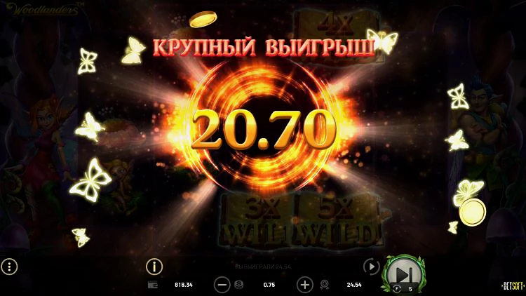 Дикий символ заменяет все обычные символы онлайн слота Woodlanders, чтобы завершить или усилить выигрышные комбинации. Это может быть тайный множитель, который может варьироваться от 1x до 5x. Если в выигрыше участвует несколько таких символов, их значения умножаются до получения выигрыша.
