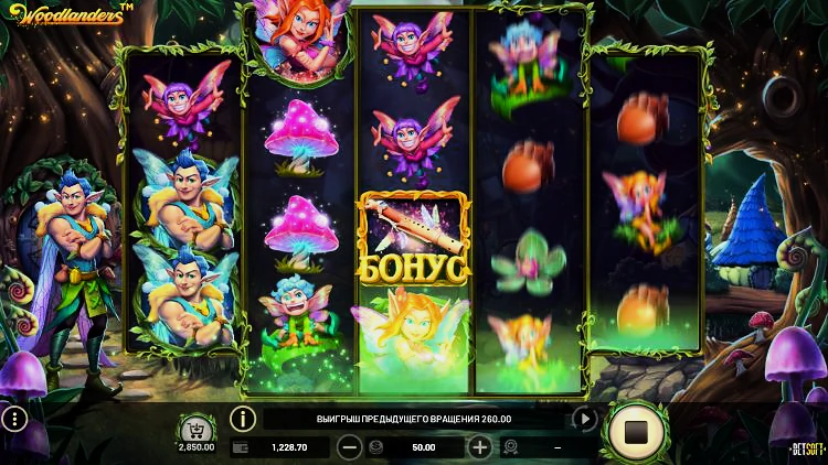 Попадите в волшебную страну онлайн-слота Woodlanders — творения BetSoft с пятью барабанами. Действие игры разворачивается в центре деревни фей. На заднем плане вы увидите дома.