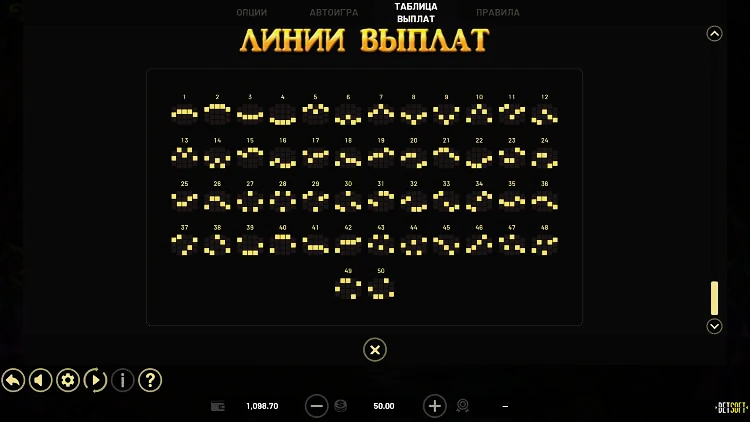 Волшебство онлайн слота Woodlanders начинается, когда вы выбираете ставку от 0,25 до 100,00. В игре 50 фиксированных линий выплат, все они начинаются с крайнего левого барабана и идут вправо.